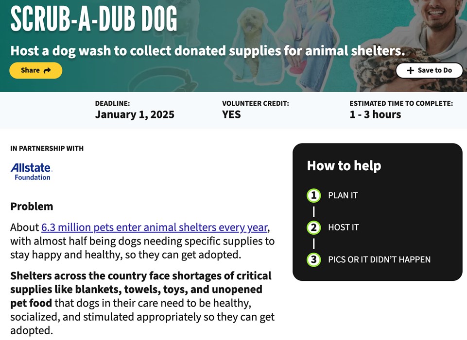 DoSomething.org에서는 청소년과 청년들이 다양한 방식으로 참여할 수 있는 자원봉사 활동을 제공한다. 합니다. 이러한 활동은 대개 사회적, 환경적, 경제적 문제를 다루며, 누구나 쉽게 참여할 수 있도록 설계되어 있다. 여기 몇 가지 예시를 소개한다.