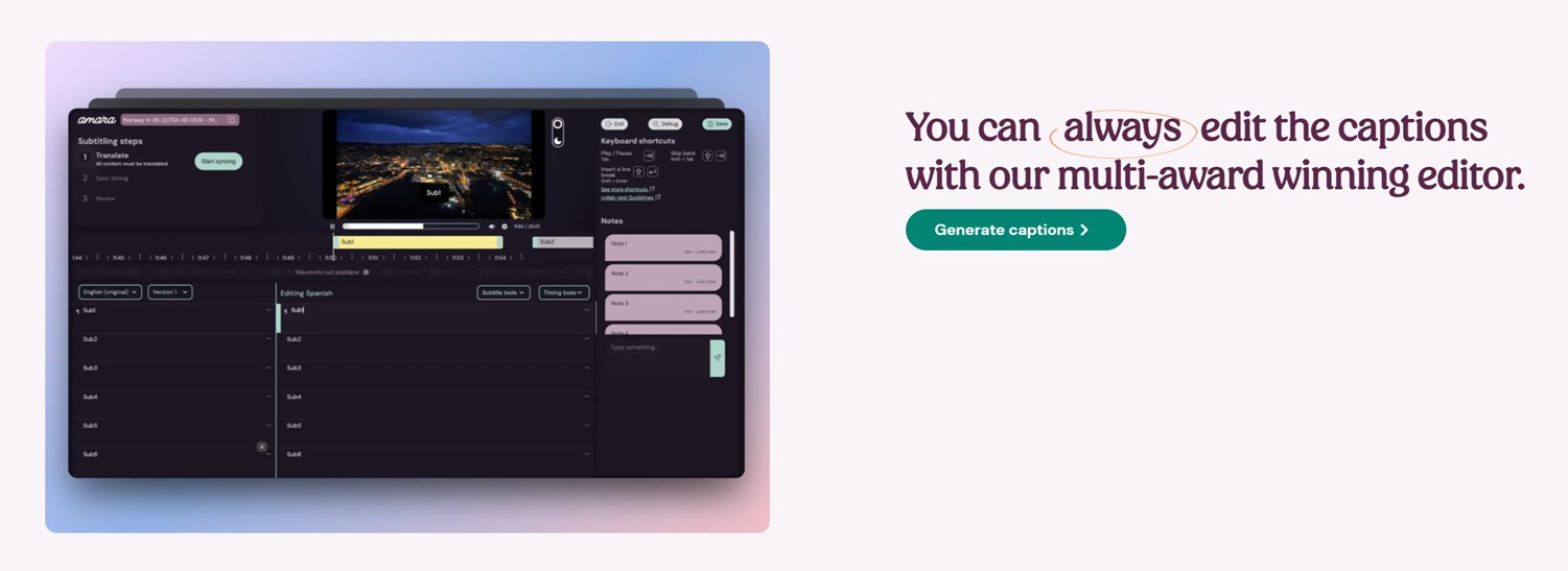 첫째, Amara는 비디오에 다국어 자막을 추가할 수 있는 플랫폼을 제공하고 있고, 자원봉사자들이 참여해 교육, 인권, 기후 변화와 같은 주제에 관한 비디오들을 번역하고 자막을 제작하고 있다. 이를 통해 비디오 콘텐츠의 접근성을 높이고, 더 많은 사람들이 다양한 주제에 대해 학습할 수 있는 기회를 제공한다. 또한, Amara는 청각 장애인을 위한 폐쇄 자막 서비스를 제공해 시청 경험을 향상시키고 있다.
